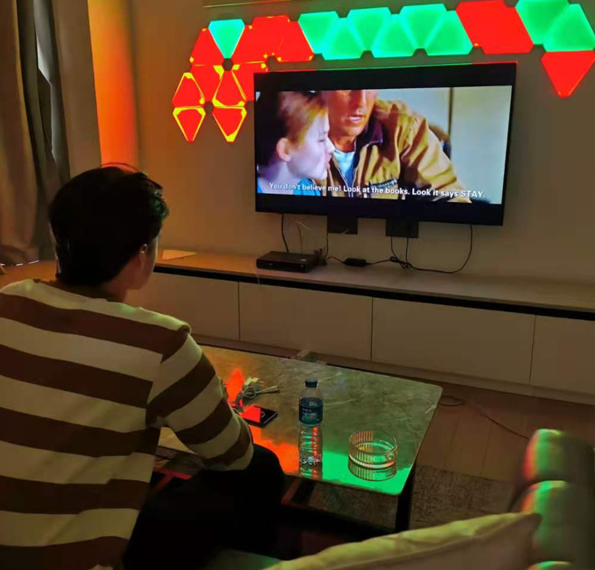 고급 품질 실내 와이파이 음악 제어 대기 다중-컬러 트라이앵글은 가벼운 모듈 주도하는 RGB 판넬벽 램프 전원 24w를 이끌었습니다